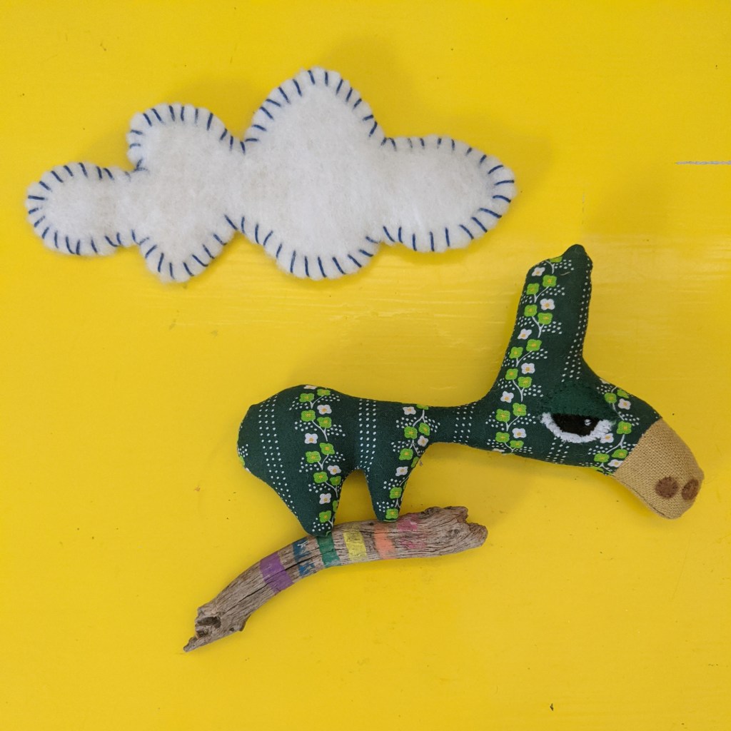 Long ago, I doodled this little burro who later made his way into a mini series of textile artworks and then became a soft sculpture. I thought I’d offer the pattern to anyone who might enjoy stitching one up. Grab yours here.