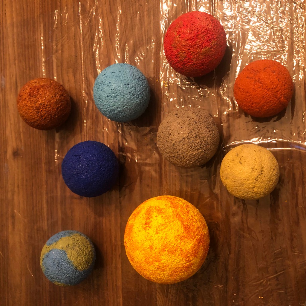 Crafty project #2 for the month was a solar system headpiece for my halloween costume. B wanted to be an astronaut since we’re learning about space, so we ran with the theme as a family. I poked around Pinterest a little to formulate a plan, pulled out the materials I had on hand that might be useful then roamed around the craft store to pick up a few more essentials. I was in the zone putting this together in the 11th hour so there’s not lots of in process pics but I’ll give you a quick rundown.