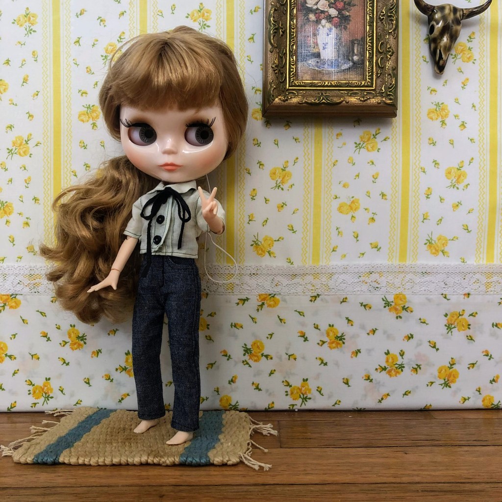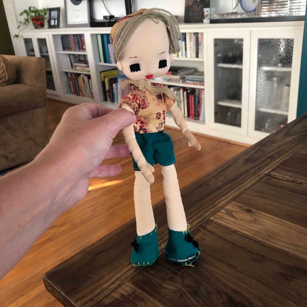 I made more progress on the Miniature Clothing class I’ve been taking and just have one project left to go, a lined, hooded coat. How cute are these tiny jeans and all the fiddly details on that blouse?! Soon I’ll have all the tiny construction skills I need to make her a full wardrobe of my own design. I’m realizing now that I’m seeing this photo on the screen that the string for her eye mechanism is visible…improving my doll photography is also on my list of things to learn 😉