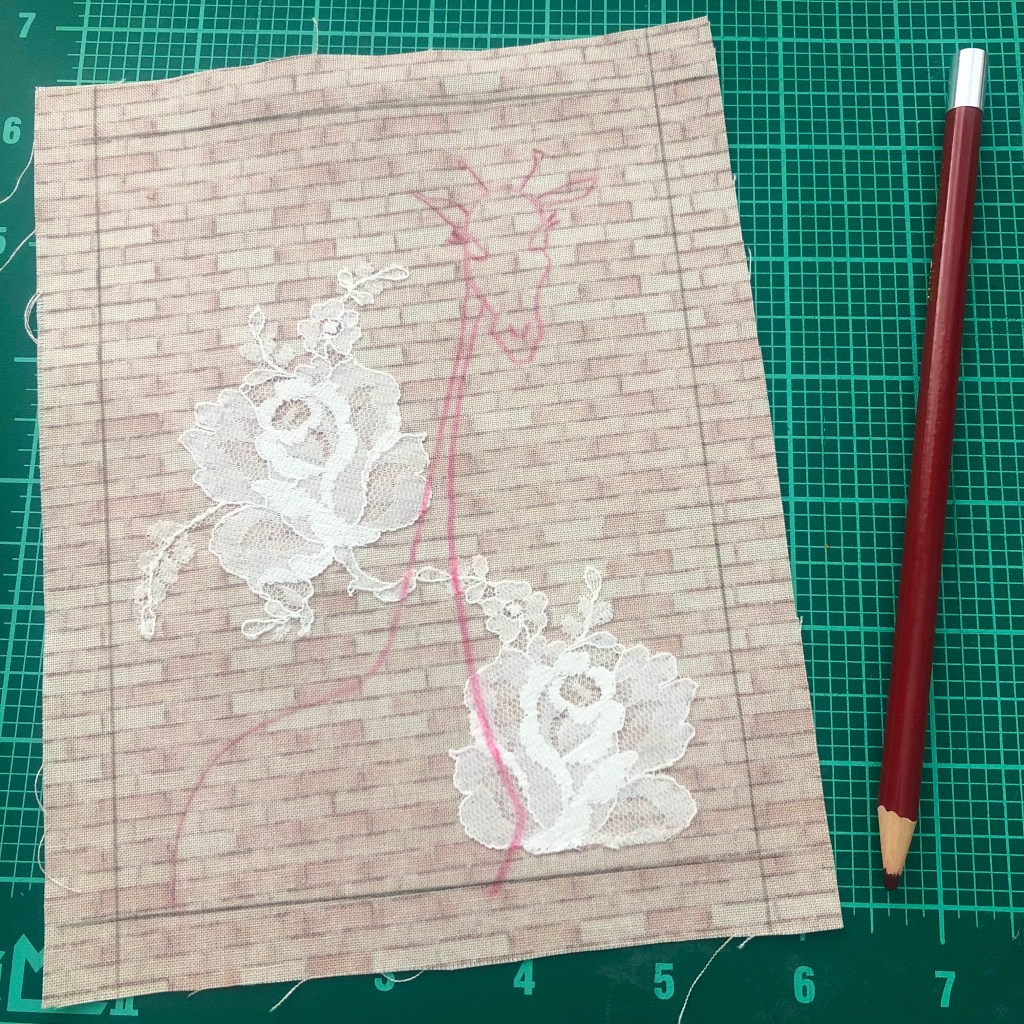 Now that your image is prepared and traced, simply place the tracing paper onto your fabric where you want it to appear and iron over the tracing paper to transfer the marks. From here, you can use free motion sewing with a machine, hand embroidery like I’ve done below or even applique bits and pieces to fill the shape.
